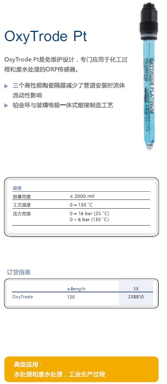 OxyTrode Pt是免維護(hù)設(shè)計,,專門應(yīng)用于化工過程和廢水處理的ORP傳感器。