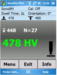 傳感器選擇: SONO-1M:HV0.1(1N) 適合于薄層,拋光的表面檢測 SONO-3M:HV0.3(3N) 銅合金材料, 鉻鍍層>1000HV SONO-8M:HV0.9(8.6N)與HV1適用性相似 SONO-10M:HV1(10N) 用于表面硬化層檢測(熱處理車間) SONO-50M:HV5(49N) 常規(guī)硬度檢測 SONO-100M:HV10(98N)用于DIN EN ISO 1090標準,無損硬度計,焊縫,切割邊緣檢測