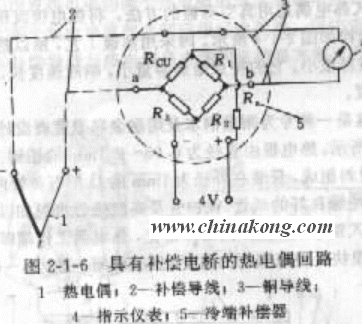 以上幾種補償法常用于熱電偶和動圈顯示儀表配套的測溫系統(tǒng)中。由于自動電子電位差計和溫度變送器等溫度測量儀表的測量線路中已設置了冷端補償電路因此,熱電偶與它們配套使用時不用再考慮補償方法,但補償導線仍舊需要。