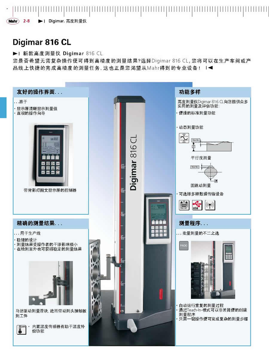最新款高度測量儀 Digimar 816 CL。 您是否希望無需復雜操作便可得到高精度的測量結(jié)果?選擇高度測量儀 Digimar 816 CL,橋梁測高儀,您將可以在生產(chǎn)車間或產(chǎn)品線上快捷的完成高精度的測量任務,電子測高儀價格,這也正是您渴望從 Mahr 得到的專業(yè)設備!