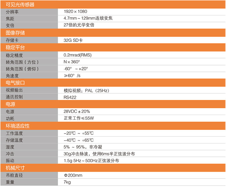 產(chǎn)品特點 體積小重量輕 直徑200mm,醫(yī)用紅外熱像儀的用途,重量7kg,大大降低飛機有效負荷 連續(xù)變焦高清可見光攝像機 配置27倍連續(xù)變焦1920×1080P的高清可見光攝像機,成像質(zhì) 量高,可呈現(xiàn)高清場景,便于精確定位故障 跟蹤精度高穩(wěn)定性好 采用陀螺穩(wěn)定平臺,可有效隔離運動載體的各種振動、起伏、 顛簸,科研型紅外熱像儀,消除圖像的模糊和晃動 視頻實時回傳 高空視頻可實時回傳至地面指揮中心,紅外熱像儀去哪買好,提高巡線效率 可拍照錄像 配置32G內(nèi)存卡,礦用紅外熱像儀,可對觀測點拍照錄像,便于地面對故障進行分析
